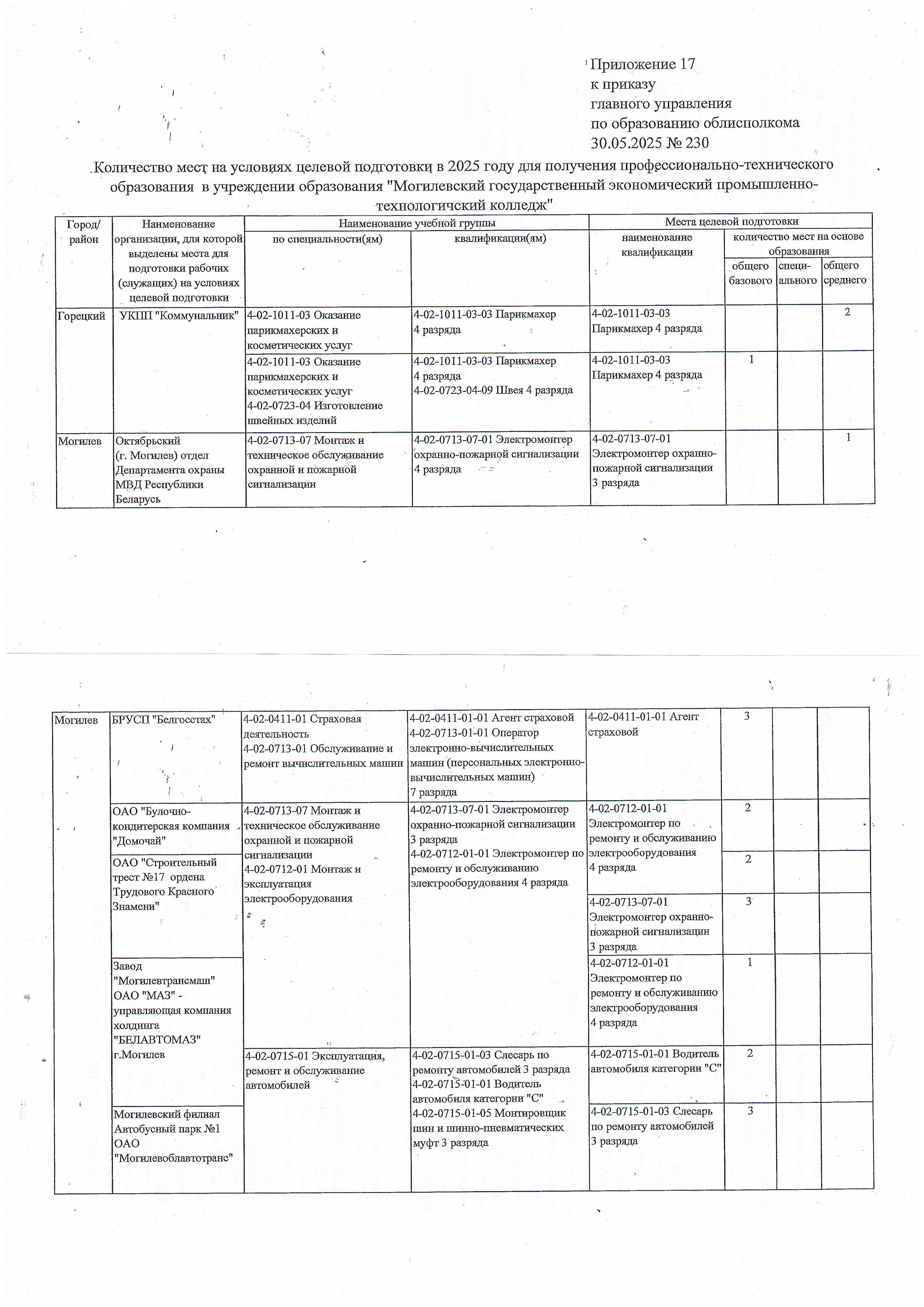 Количество мест на основе специального образования |