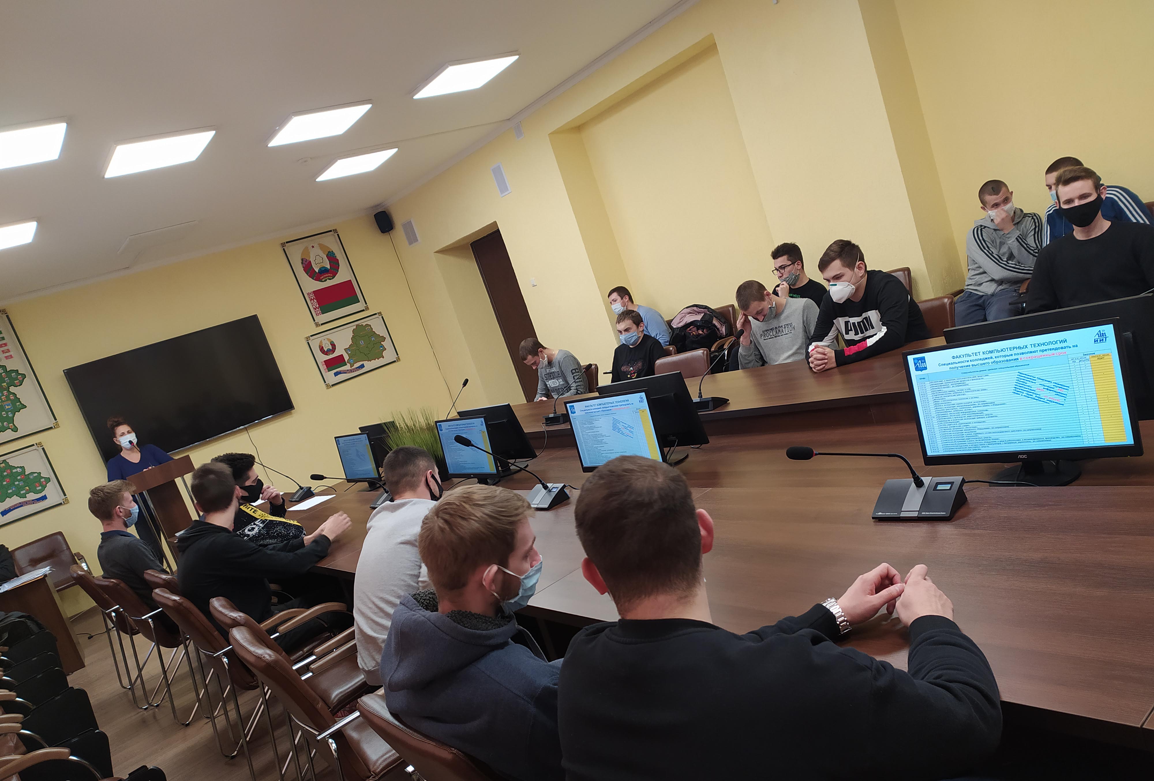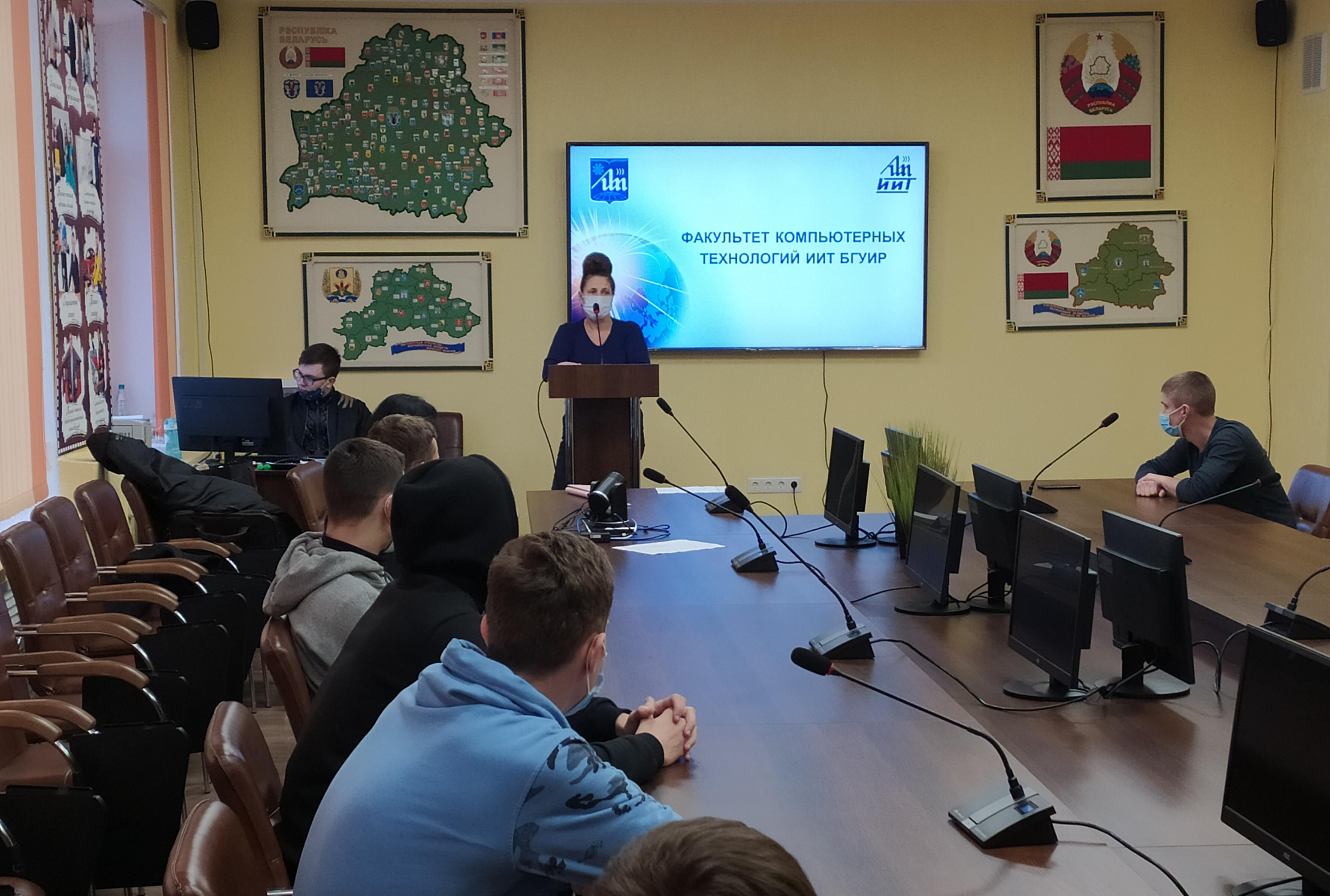 12 октября с целью профориентации наше учреждение образования посетила заместитель декана факультета компьютерных технологий Белорусского государственного университета информатики и радиоэлектроники С.В. Власюк, которая встретилась с учащимися групп 2-132 (специальность «Техническая эксплуатация автомобилей») и 2-133 (специальность «Монтаж и эксплуатация охранно-пожарной сигнализации»). Светлана Владимировна подробно рассказала ребятам об особенностях получения высшего образования в престижном вузе, возможностях обучения по сокращенной форме, требованиях при поступлении и ответила на интересующие наших выпускников вопросы.