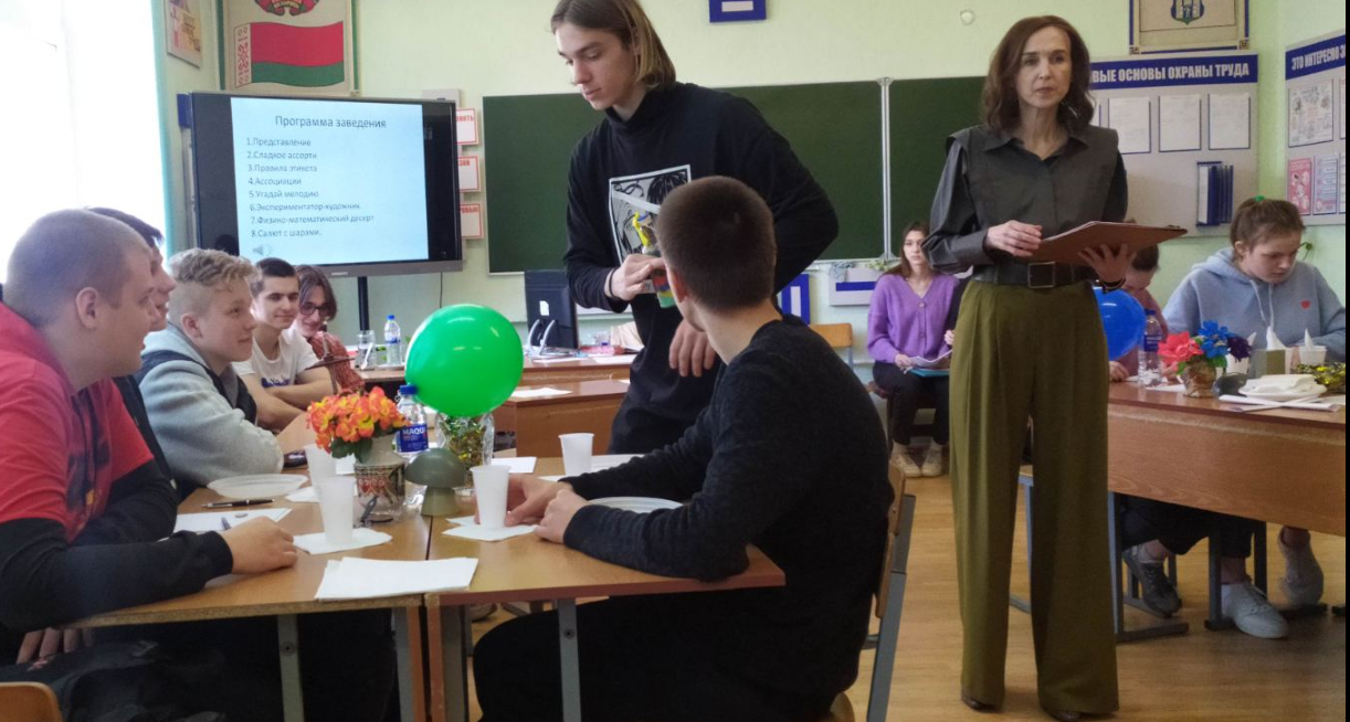 Коноплицкая Марина Александровна и Грищук Раиса Михайловна в рамках предметной недели предметов естественно-математического цикла провели открытое внеклассное мероприятие. Две команды учащихся отвечали на вопросы по математике, ставили физические опыты, угадывали мелодии, связанные с природными явлениями, читали стихи, составленные из чисел, рисовали картины. Для болельщиков команд был организован конкурс. Своими ответами они имели возможность помочь команде заработать баллы. Обучающиеся активно принимали участие в мероприятии, с интересом слушали задания ведущих, творчески подходили к решению поставленных задач. Работа в команде способствовала развитию коммуникативных качеств личности. Учащиеся с интересом принимали участие в мероприятии.
