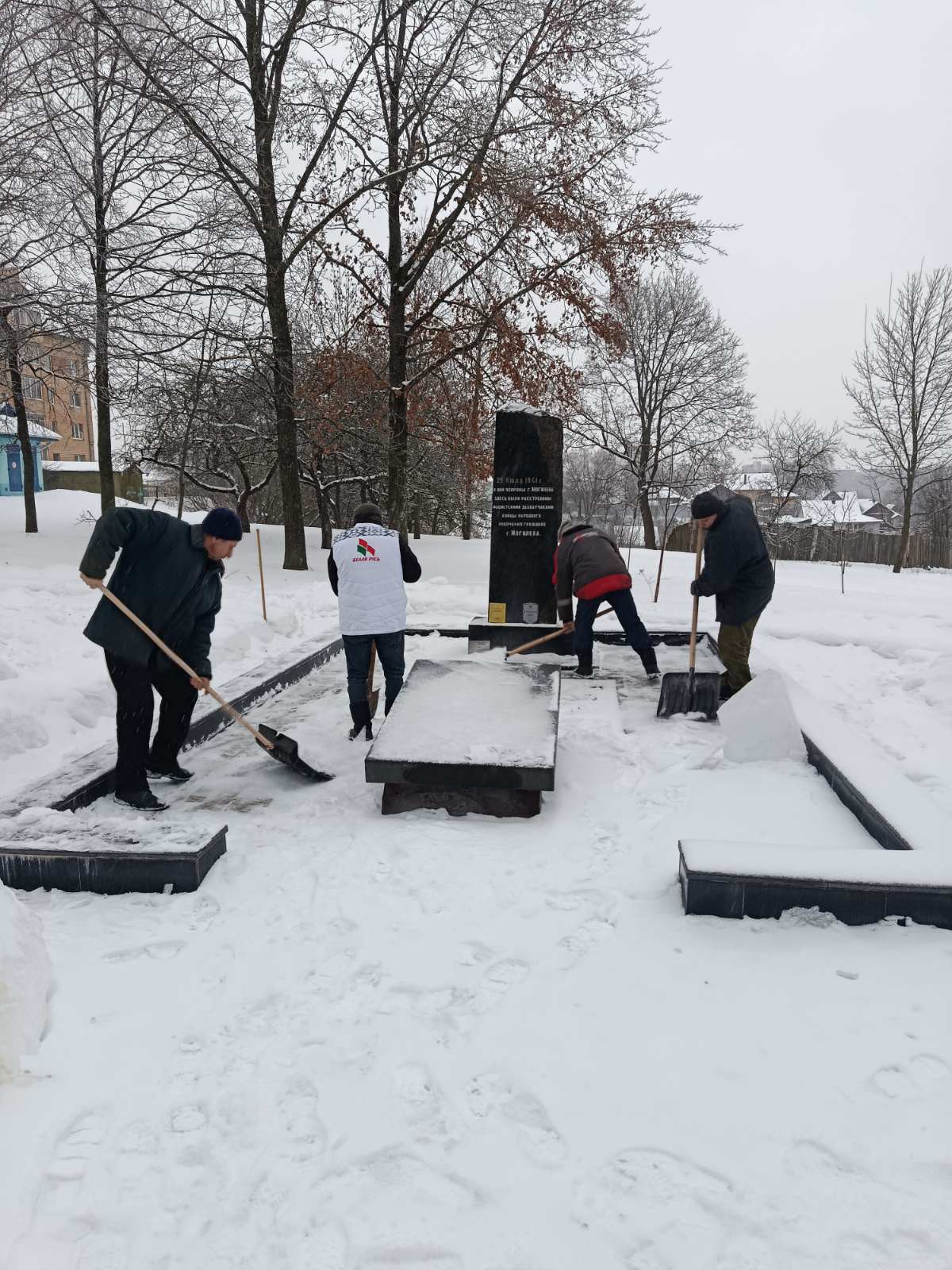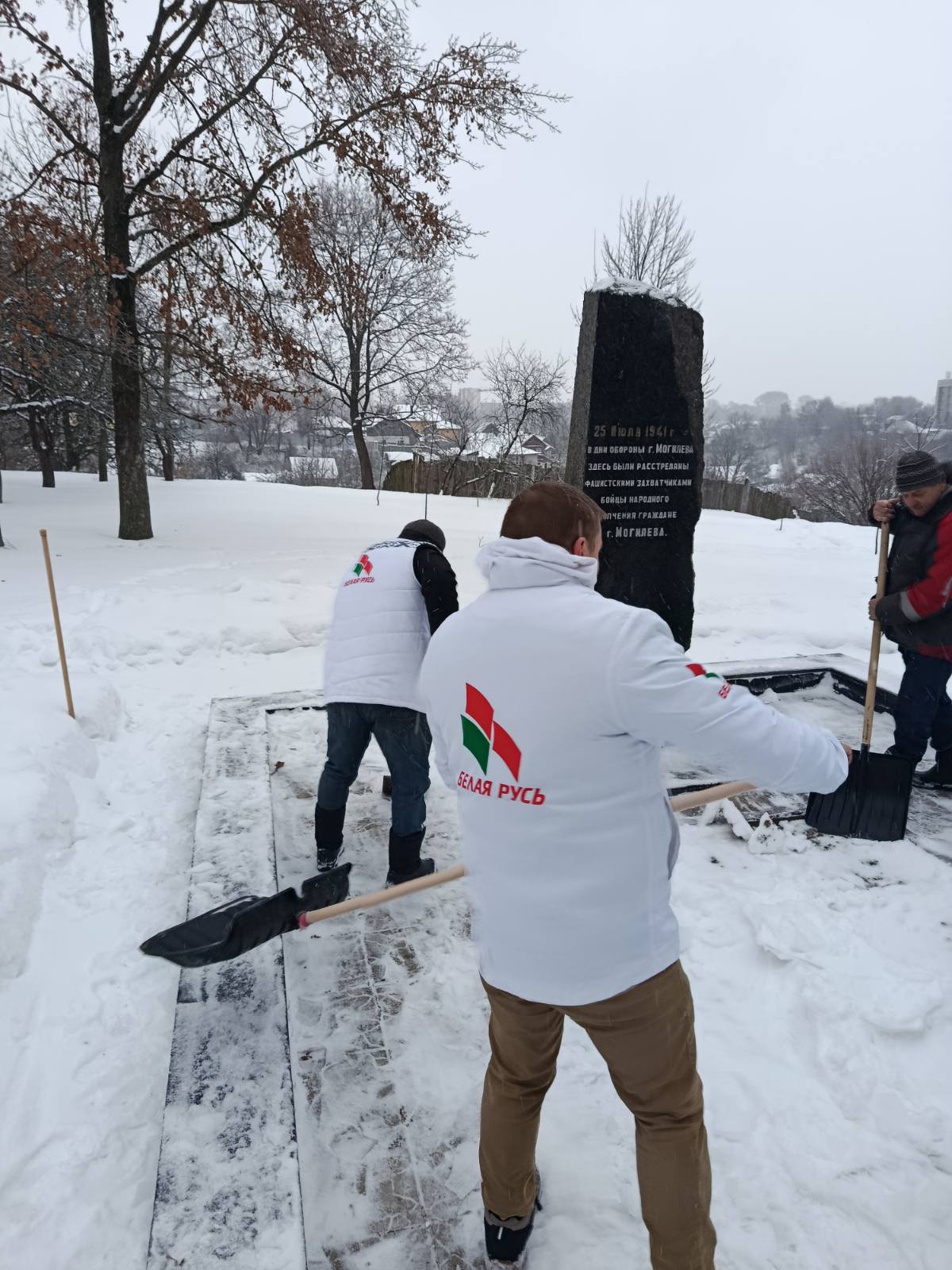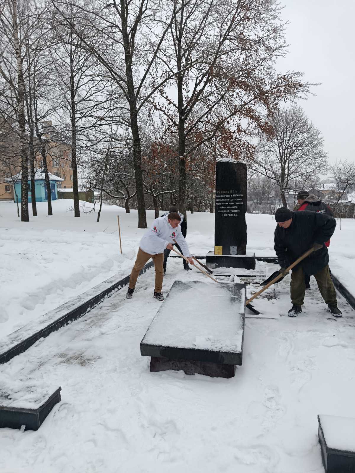 Они организовали выезд к Братской могиле бойцов народного ополчения, чтобы расчистить подходы и территорию мемориала от снежных заносов. После обильных снегопадов волонтеры навели там образцовый порядок.