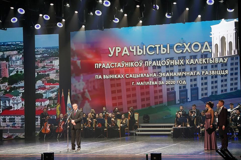26 февраля во Дворце культуры области прошло торжественное собрание представителей трудовых коллективов по итогам социально-экономического развития Могилева за 2020 год.