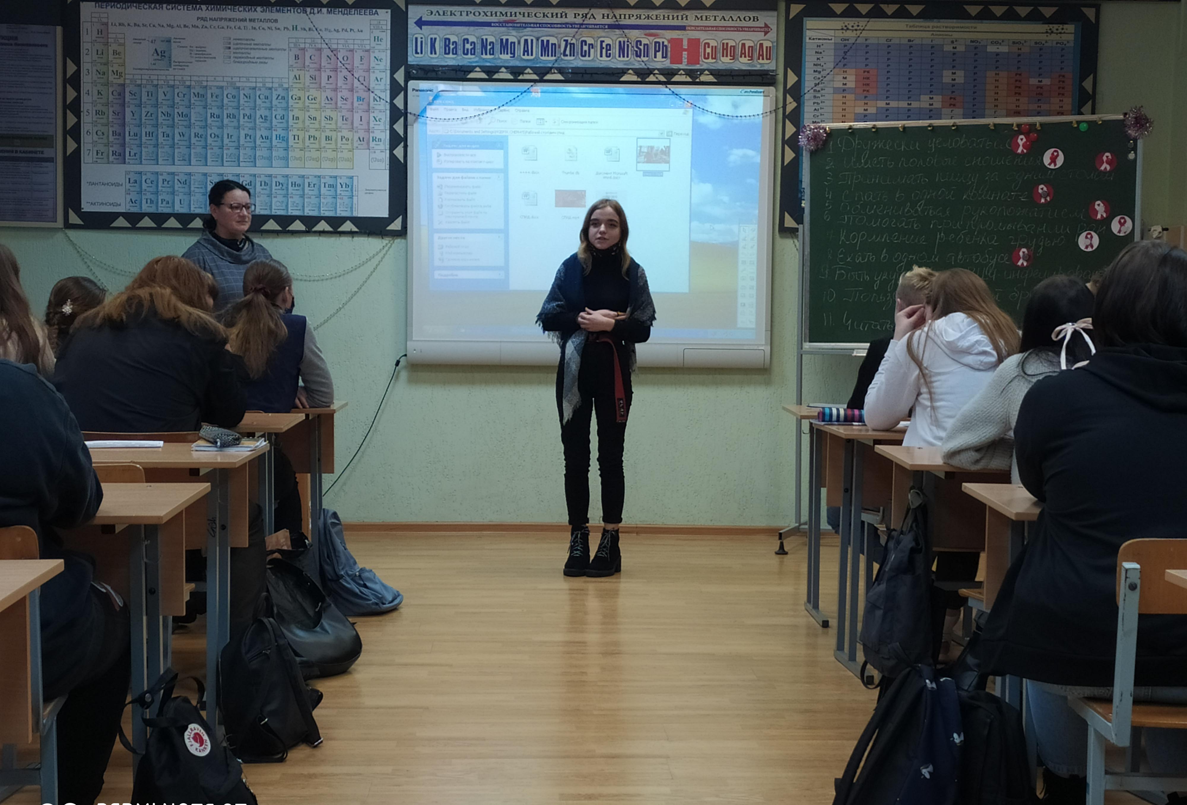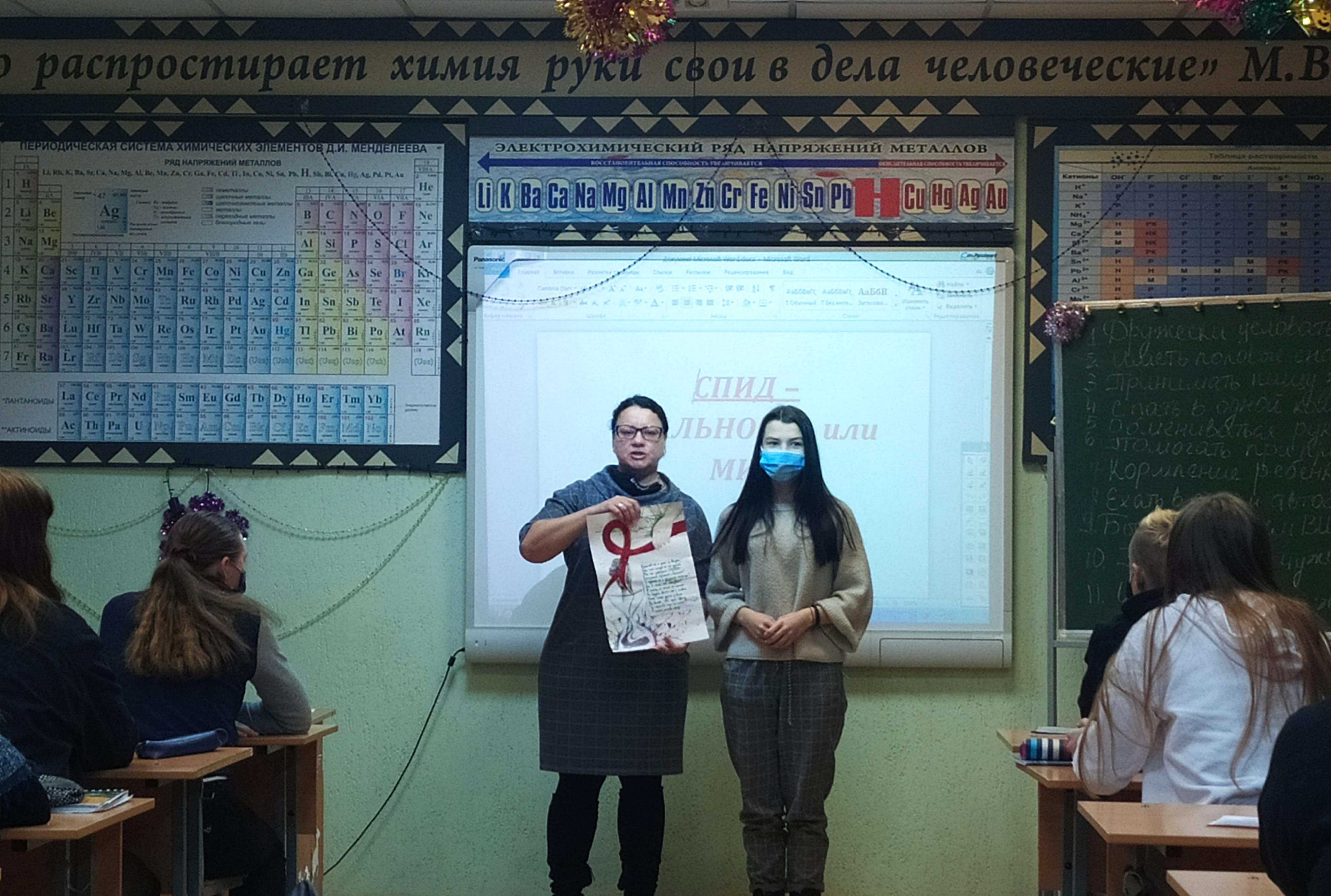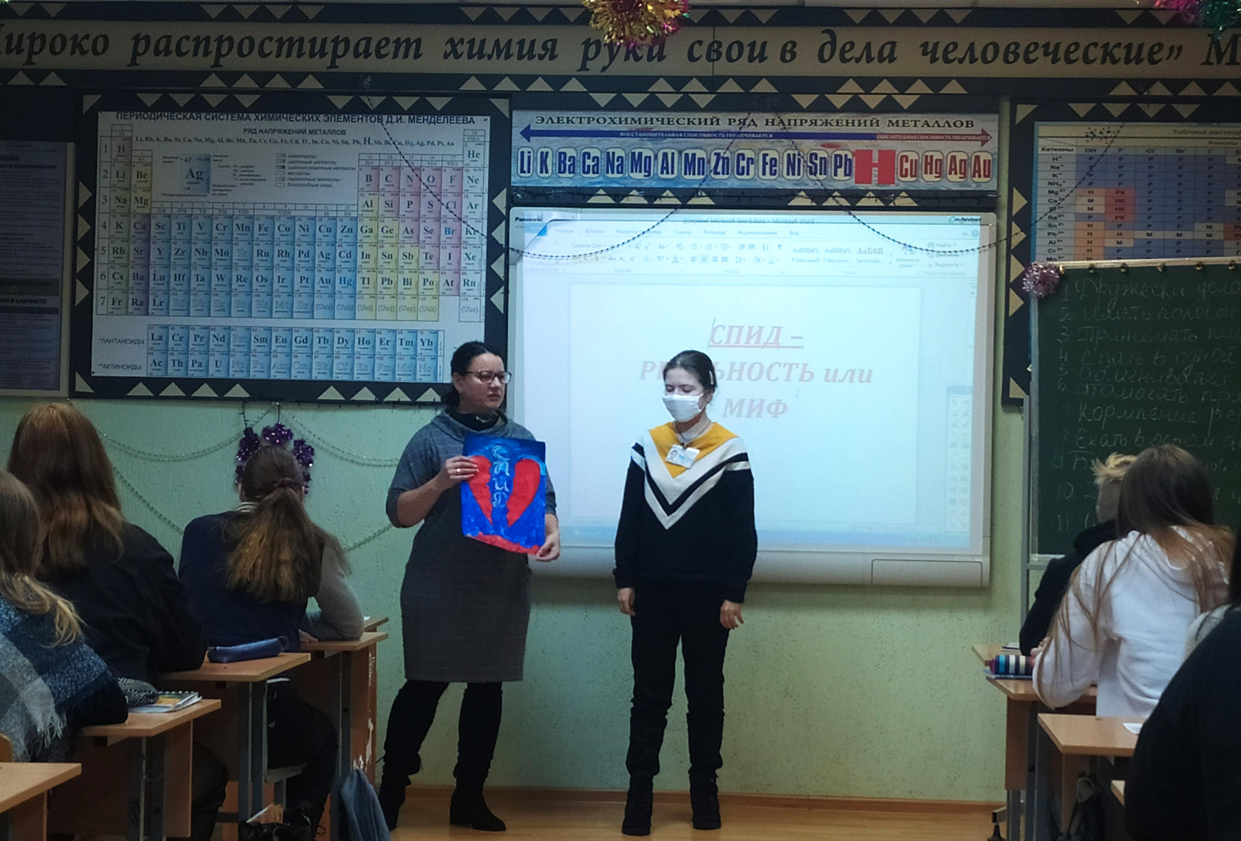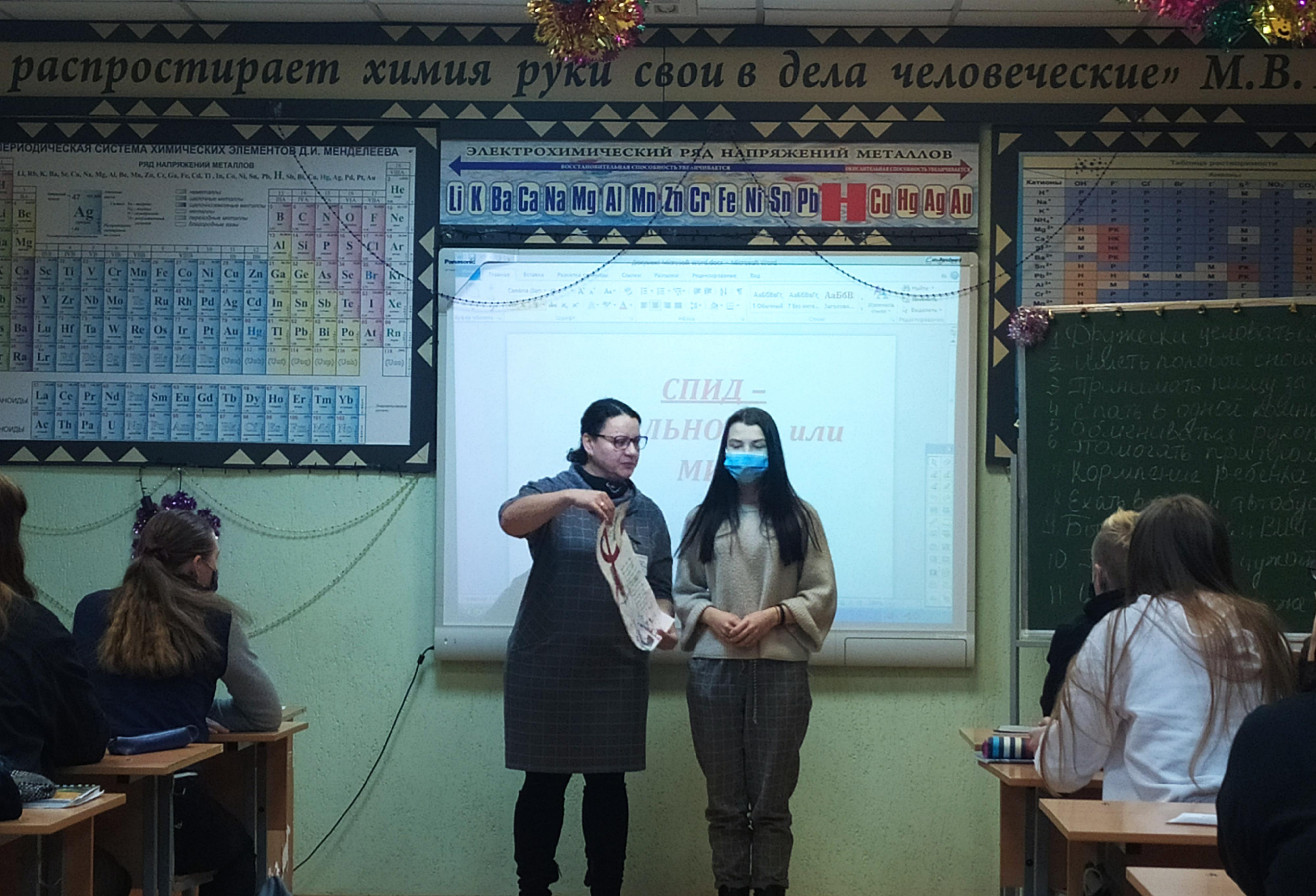 Воспитательное мероприятие «СПИД – реальность или миф», приуроченное ко Всемирному дню борьбы со СПИДом, провела мастер производственного обучения Кулешова Елена Владимировна в группе 39. В увлекательной форме с применением мультимедийных, словесных и наглядных средств, а также с привлечением учащихся педагог ознакомила с историей заболевания, причинами его возникновения, стадиями протекания. В ходе мероприятия учащиеся проявили свои творческие способности: были представлены рисунки, декламировались стихотворения по данной тематике, срежиссирован и снят видеоролик, демонстрирующий толерантное отношение к заболевшим. Особое внимание было уделено гигиене и простым правилам, соблюдение которых поможет не только уберечься от СПИДа, но и коронавирусной инфекции.
