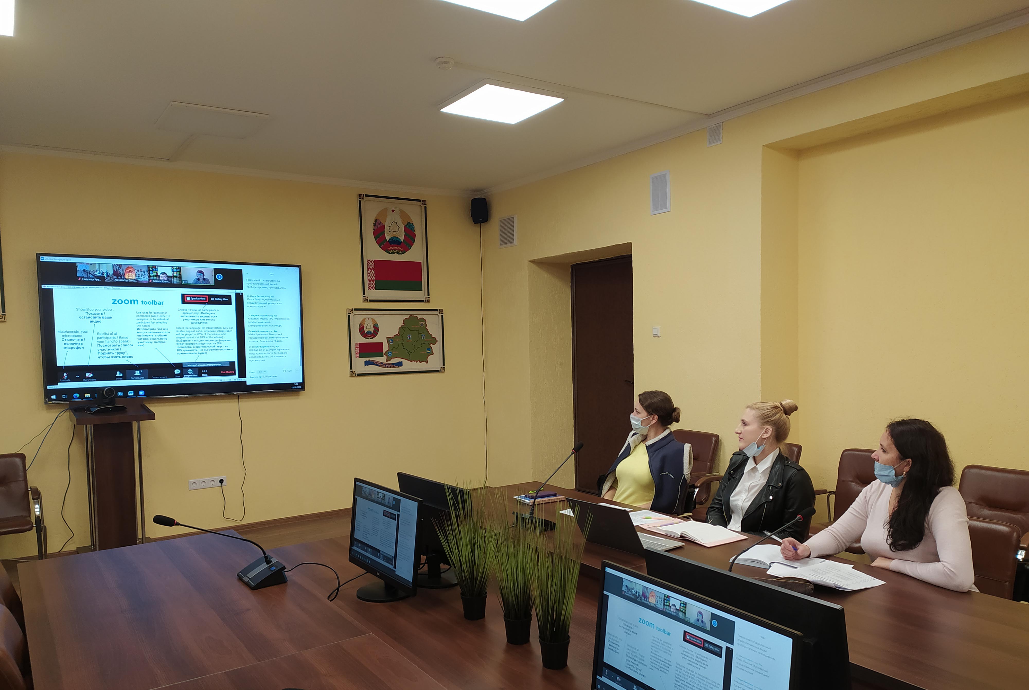 15 октября Европейским Фондом Образования был проведен международный вебинар «Обзор политик и практик в области развития цифрового и онлайн обучения в профессиональном образовании и обучении в Республике Беларусь», в котором приняли активное участие заместитель директора по учебно-методической работе Крутолевич Надежда Святославовна, преподаватель Морозова Светлана Михайловна, мастер п/о Свяховская Елена Владимировна. Педагогические работники колледжа обсудили в рамках рабочей группы приоритеты развития цифровой компетентности учащихся и преподавателей и внесли свои предложения по данному вопросу.