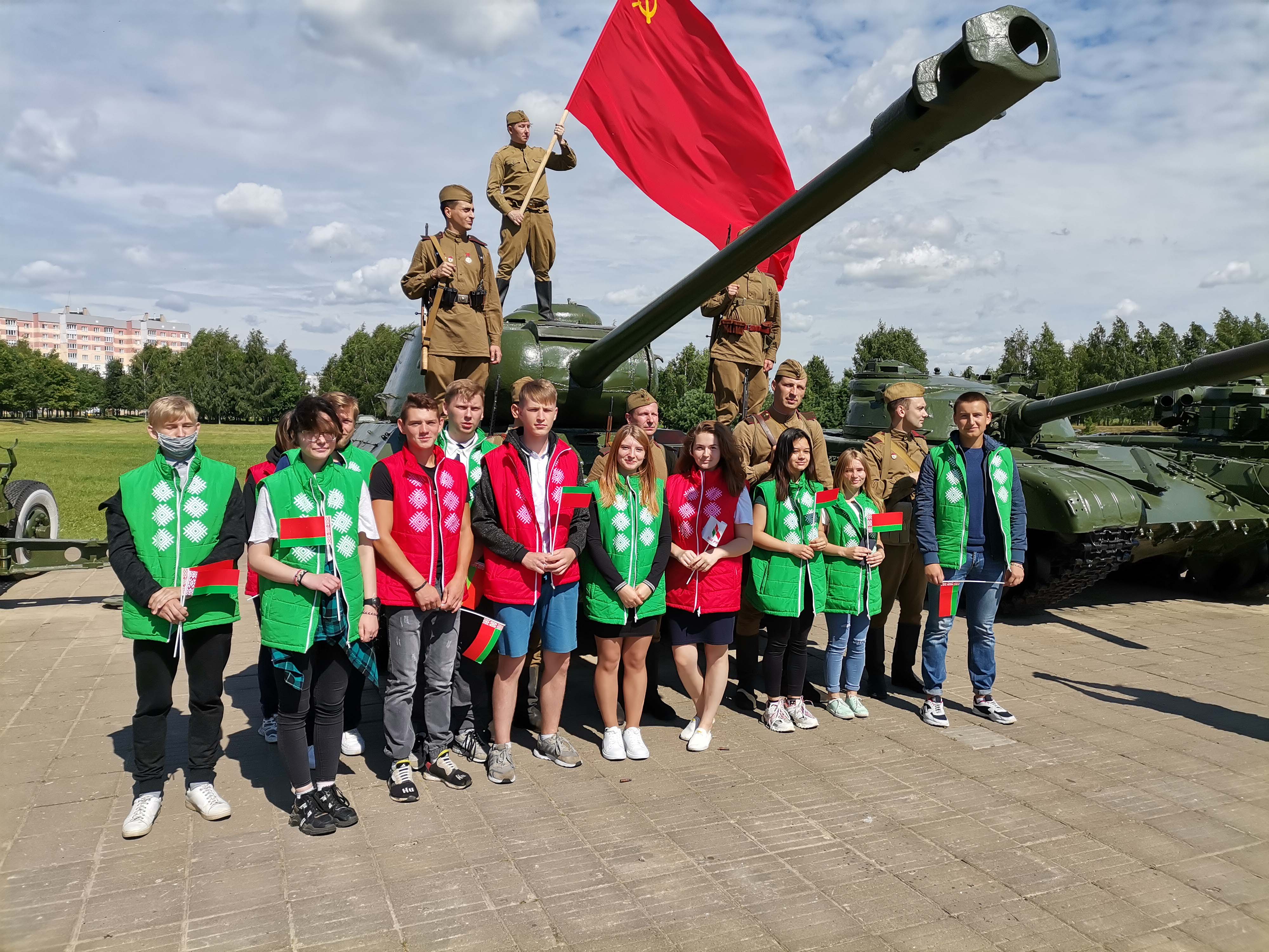 Учащиеся колледжа, члены волонтерского отряда «Мастеровой», приняли участие в торжественном мероприятии, после чего стали свидетелями театрализованной реконструкции боев 1944 года за освобождение деревни Буйничи, а также церемонии передачи советской противотанковой самоходной артиллерийской установки СУ-100 мемориальному комплексу.