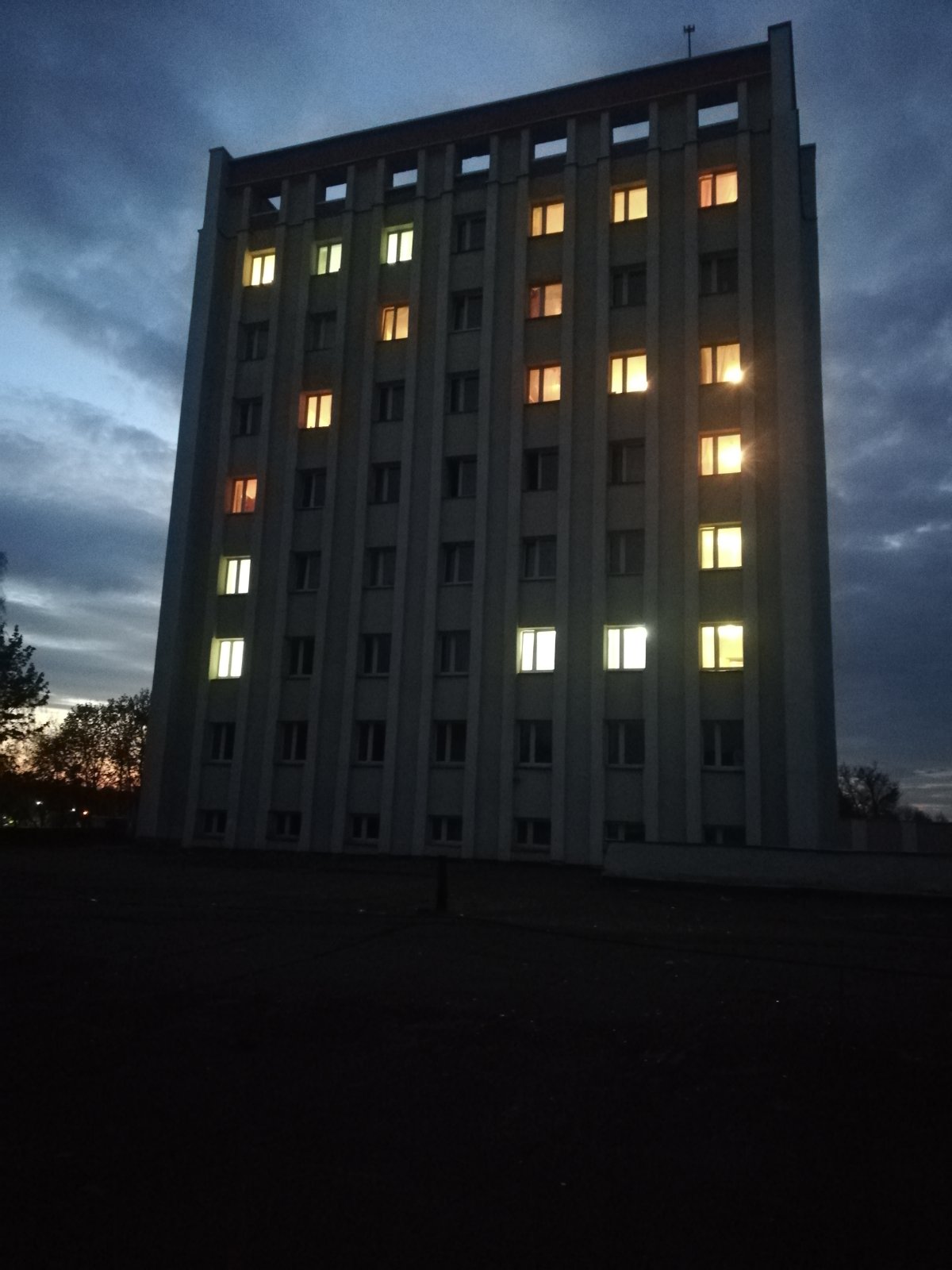 В рамках акции 9 мая с 21.30 до 22.30 свет в окнах общежития колледжа был зажжен таким образом, что на фасаде здания получилась цифра 75.