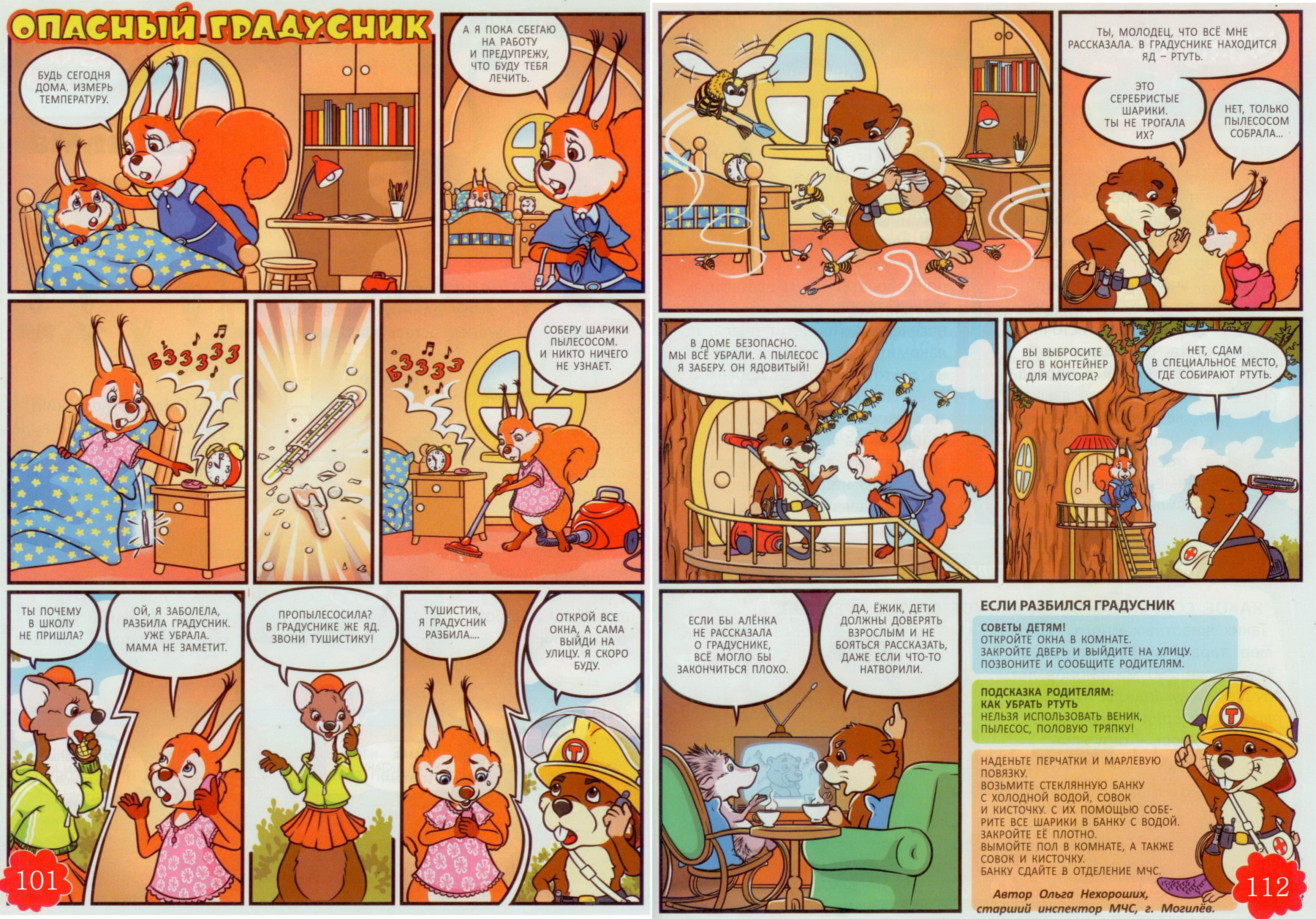 - Молодец. Так вот, даже один маленький шарик ртути, находящийся в доме может серьезно навредить здоровью, - продолжил Тушистик. – Поэтому если разбился градусник – нужно тщательно все убрать. Но только не пылесосом и не тряпкой. Про безопасные способы уборки я расскажу взрослым на общеполянском собрании. Пока же я заберу Ваш пылесос.