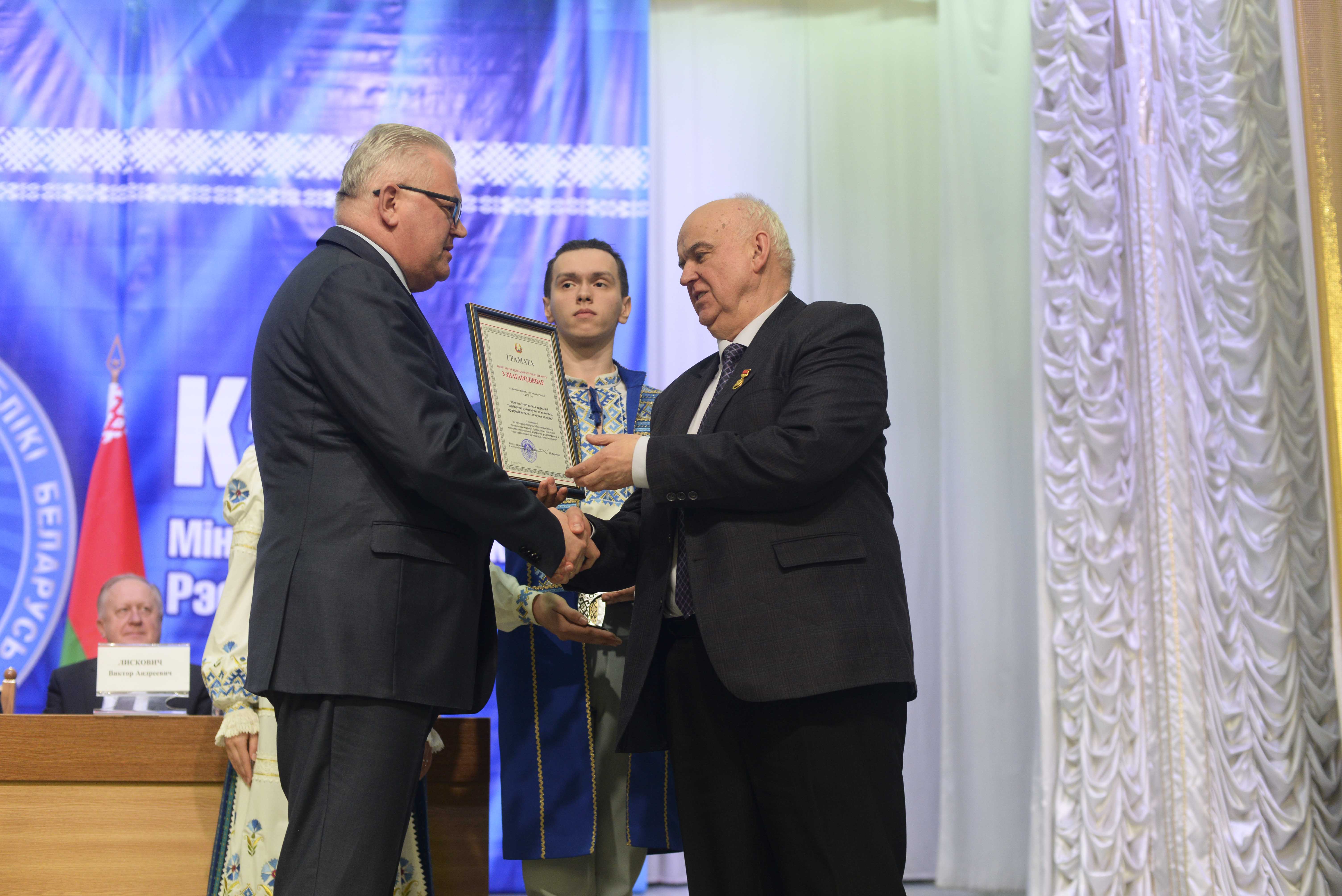 В рамках заседания состоялось награждение по итогам работы системы образования за 2019 год. Среди учреждений профессионально-технического образования первое место «За лучшую работу по обеспечению качества подготовки кадров с профессионально-техническим и средним специальным образованием в соответствии с потребностями организаций отраслей экономики» присуждено Могилевскому государственному экономическому профессионально-техническому колледжу.