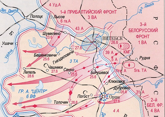 Войска 1-го Прибалтийского и 3-го Белорусского фронтов вели бои по уничтожению окружённой группировки противника в районе Витебска. В ходе штурма советские войска овладели этим крупным областным центром Беларуси - важным стратегическим узлом обороны немцев на западном направлении.