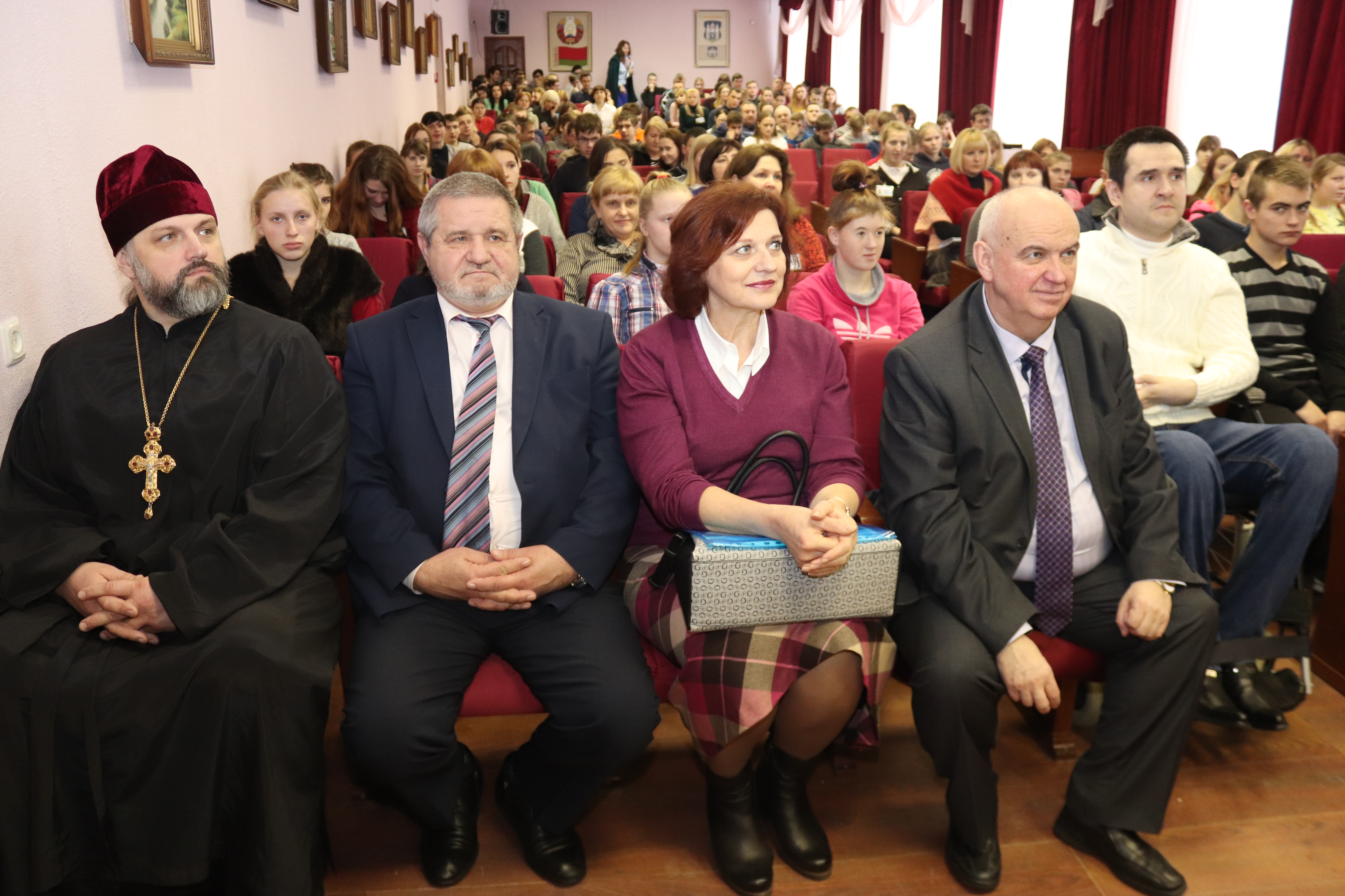 Гостями мероприятия стали председатель областного комитета профсоюза работников образования и науки Сергей Васильевич Виноградов, руководитель Могилевского отделения Белорусского детского фонда Ирина Олеговна Фисюк и настоятель Борисо-Глебской церкви отец Сергий. Они произнесли теплые слова и вручили ребятам подарки, а затем перед собравшими выступили работники и учащиеся колледжа, подготовившие концертные номера.