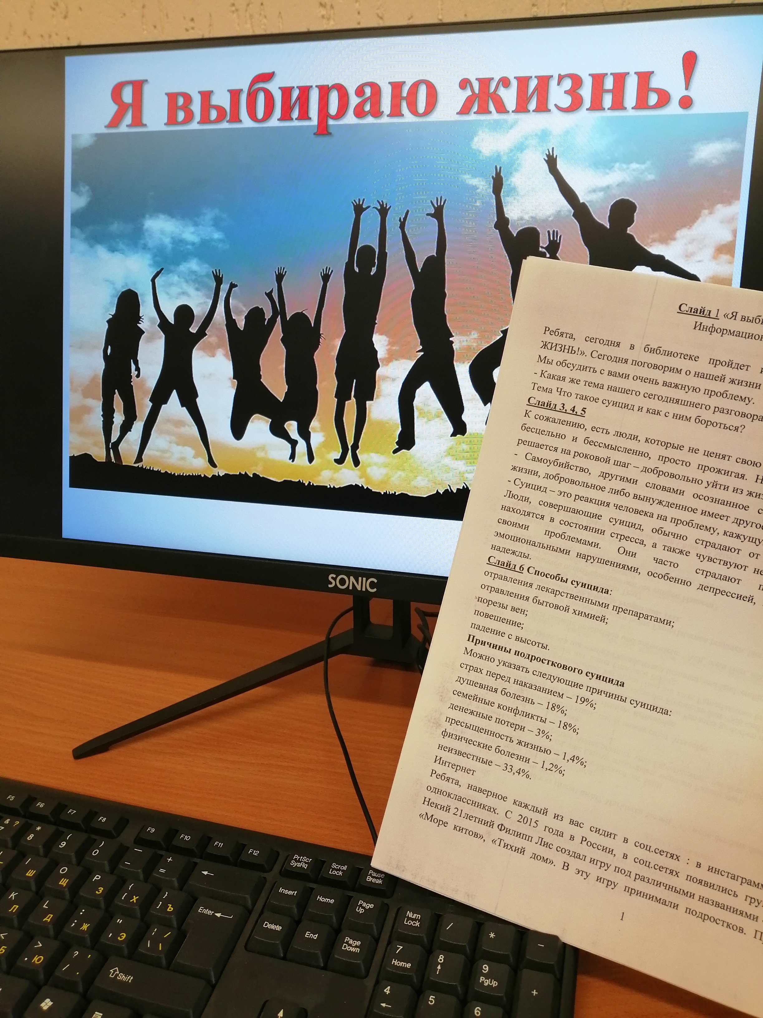 В целях формирования у учащихся позитивного мышления, принципов здорового образа жизни, в рамках месячника профилактики кризисных состояний обучающихся 26 марта в библиотеке прошел информационный урок «Я выбираю жизнь». Сотрудники библиотеки рассмотрели с ребятами ситуации и способы предотвращения суицидного поведения, познакомили с основными понятиями и причинами данной проблемы. В конце мероприятия присутствующим пожелали ценить свою жизнь, уважать свои достоинства, радоваться своим успехам.