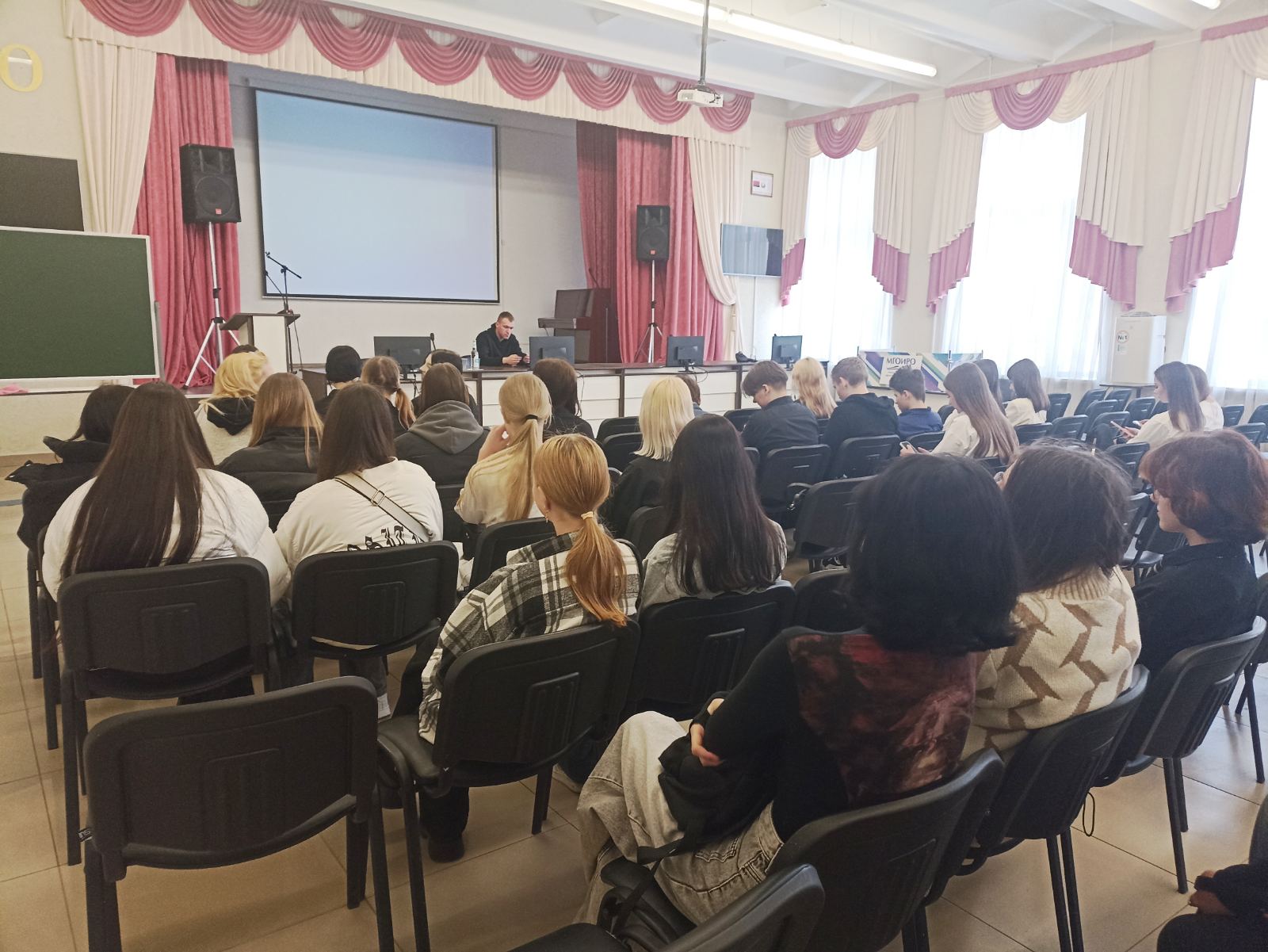 Спикерами выступили Галкин Юрий Павлович, координатор совместного проекта Глобального фонда по борьбе со СПИДом и ГУНиПТЛ КИ МВД, и Лученок Максим Александрович, консультант по химической зависимости, сотрудник Центра здоровой молодежи.