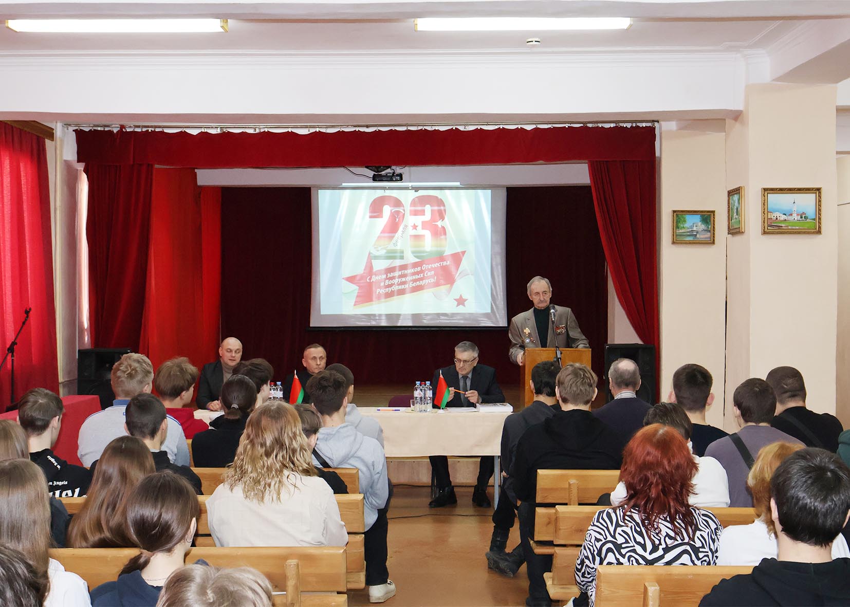 В преддверии Дня защитников Отечества и Вооруженных сил Республики Беларусь и в рамках республиканской декады гражданско-патриотических дел «Афганiстан у лёсах нашых землякоў» в колледже прошла встреча учащихся с заместителем председателя Могилевской областной организации «Белорусский союз ветеранов войны в Афганистане» полковником Ваньковичем В.Ф. и работником учреждения образования, воином-интернационалистом Булко Л.Н. Они поделились с собравшимся воспоминаниями о своей службе в Афганистане и рассказали о жизни после.