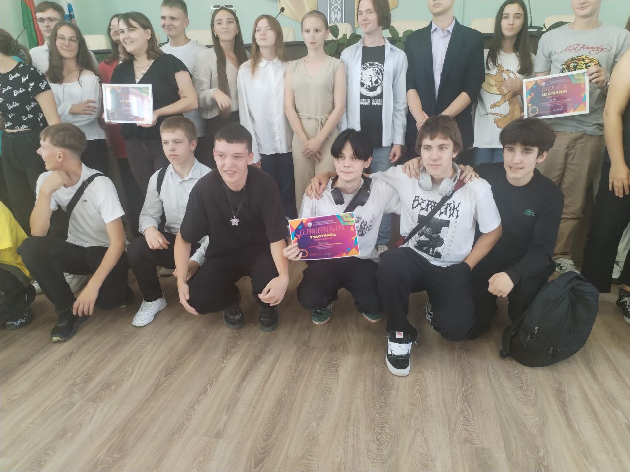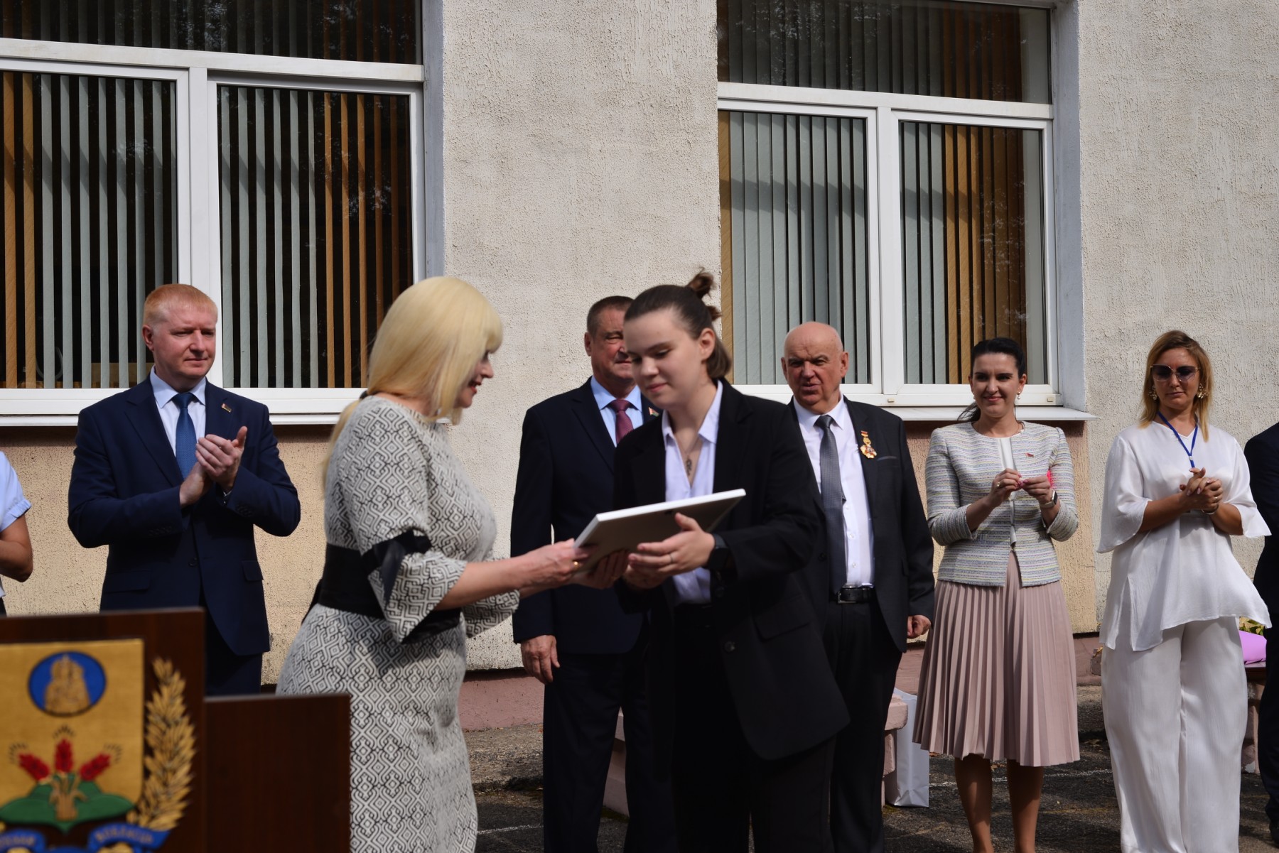 Почетные гости – Председатель Постоянной комиссии Совета Республики Национального собрания Республики Беларусь по региональной политике и местному самоуправлению Л.К.Заяц; Первый заместитель начальника главного управления по образованию Могилевского облисполкома И.Г.Лошкевич; Председатель областной организации Белорусского профсоюза работников образования и науки Л.В.Старостина; директор РУПРТЦ «Телерадиокомпания «Могилев» Т.А.Ларина; директор ЧУНПП «Технолит» А.М.Бодяко; директор ОАО «Могилевгазстрой» Л.А. Глушаков – поздравили присутствующих с началом 2024/2025 учебного года, отметили выдающиеся успехи коллектива колледжа под руководством Почетного гражданина г. Могилева О.А.Бахановича, а также вручили награды, денежные сертификаты и подарки.