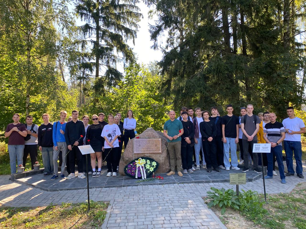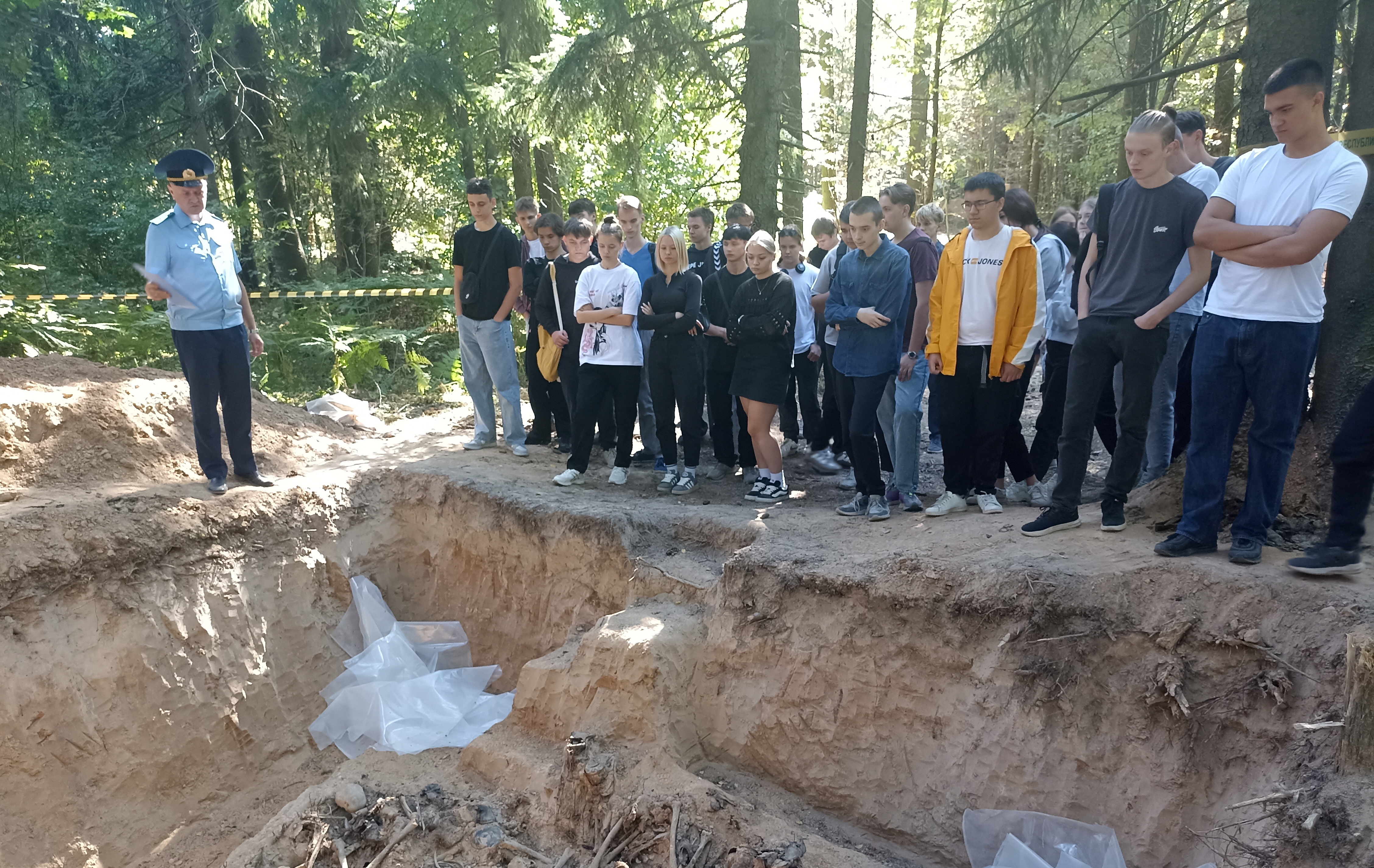 В целях информирования населения о ходе и результатах расследования уголовного дела по факту геноцида белорусского народа, формирования патриотически настроенного гражданского общества, сохранения исторической правды и памяти о Великой Отечественной войне учащиеся и работники колледжа в сопровождении работника прокуратуры посетили установленное ранее неизвестное место захоронения мирных жителей города Могилёва в районе лесного массива по ул.Ровчакова.