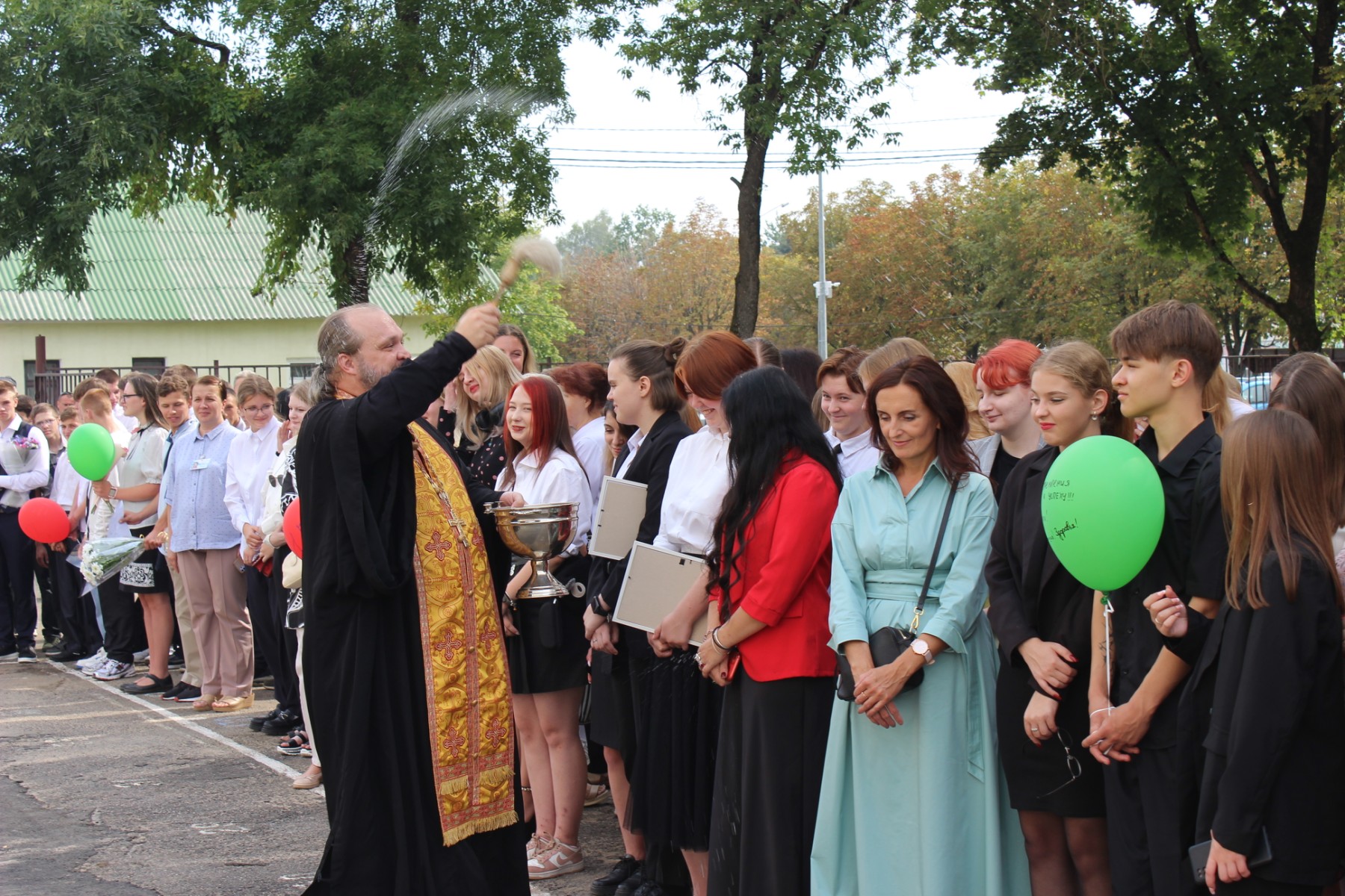 Отец Артемий совершил чин благословения на учебный год. А первокурсники символично отпустили в небо шарики с пожеланиями.