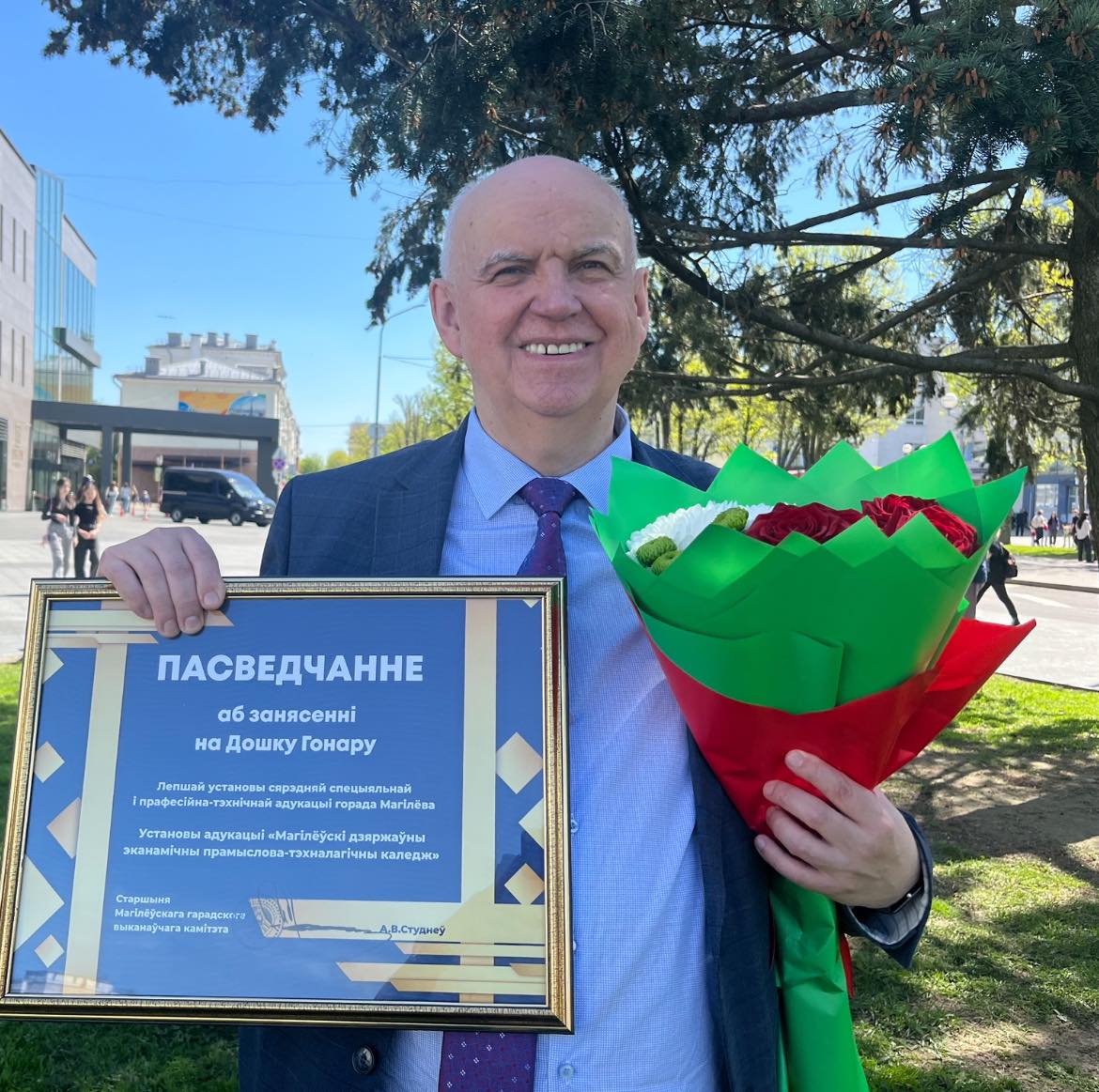 Решением городского Совета депутатов от 21.06.2024 директору Могилевского государственного экономического промышленно-технологического колледжа Олегу Адамовичу Бахановичу присвоено звание «Почетный гражданин города Могилева»!!! Этот человек известен в Могилеве и стране не только выдающимися достижениями в сфере профессионального образования, но успехами в общественной, просветительской, культурной деятельности. Неслучайно 26 лет возглавляемое им учреждение образования - лидер по всем показателям в городе, области и Республике Беларусь. В 2017, 2019, 2023 годах МГЭПТК признан лучшим в стране по подготовке кадров среди профессиональных учебных заведений. Весь коллектив работников и учащихся МГЭПТК искренне поздравляет своего руководителя с заслуженной наградой! Пусть его звезда ярко засияет на площади Звезд!