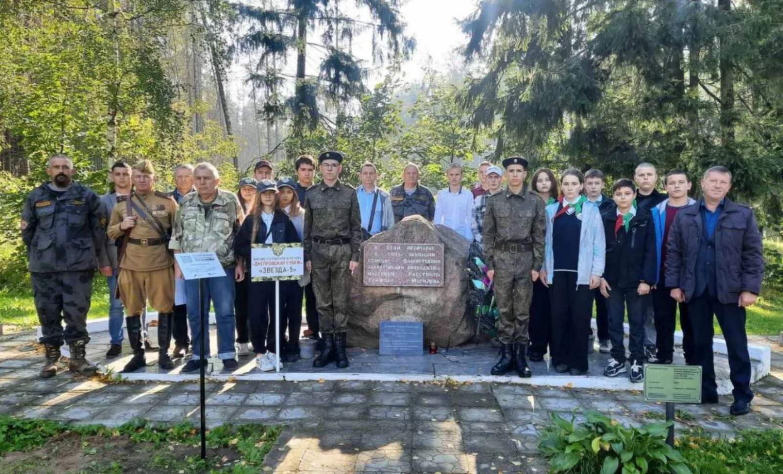 21 сентября учащиеся и работники нашего колледжа приняли участие в открытии памятной доски с QR-кодом у мемориального камня-валуна на краю лесного массива по ул.Ровчакова в Могилеве. В этом лесном массиве в период Великой Отечественной войны нацисты производили расстрелы мирных жителей города Могилева, военнопленных, подпольщиков, партизан. Здесь находится братская могила безымянных жертв расстрелов.