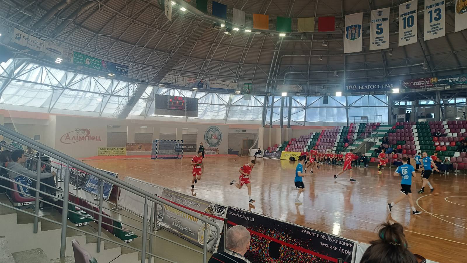 посещение товарищеской игры по гандболу среди команд Могилева и сборной РБ в спортивном комплексе «Олимпиец».