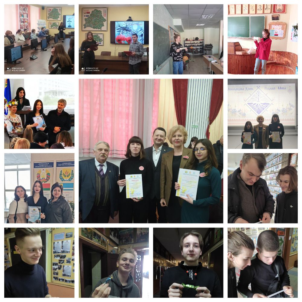 Также 21 февраля в МГУ им.А.Кулешова состоялось награждение победителей открытого литературноконкурса "И кружится планета Кулешова". Учащиеся нашего колледжа Анастасия Кузьменкова, Лохмакова Елизавета и их преподаватель Сёмчена Л.Т. приняли участие в мероприятиях, посвященных Дню родного языка. Работа Анастасии Кузьменковой признана лучшим произведением, а работа Елизаветы Лохмаковой отмечена дипломом I степени в номинации "Ёсць у паэта свой аблог цалiнны" (ээсе о малой Родине). После награждения представители нашего колледжа смогли посмотреть литературно-пластический спектакль по произведениям белорусского поэта Алеся Казеки и пообщаться с автором, а также с председателем правления Могилевского областного отделения ОО "Белорусский фонд мира" А.А.Никитиным, которые пожелали новых творческих успехов нашим учащимся.