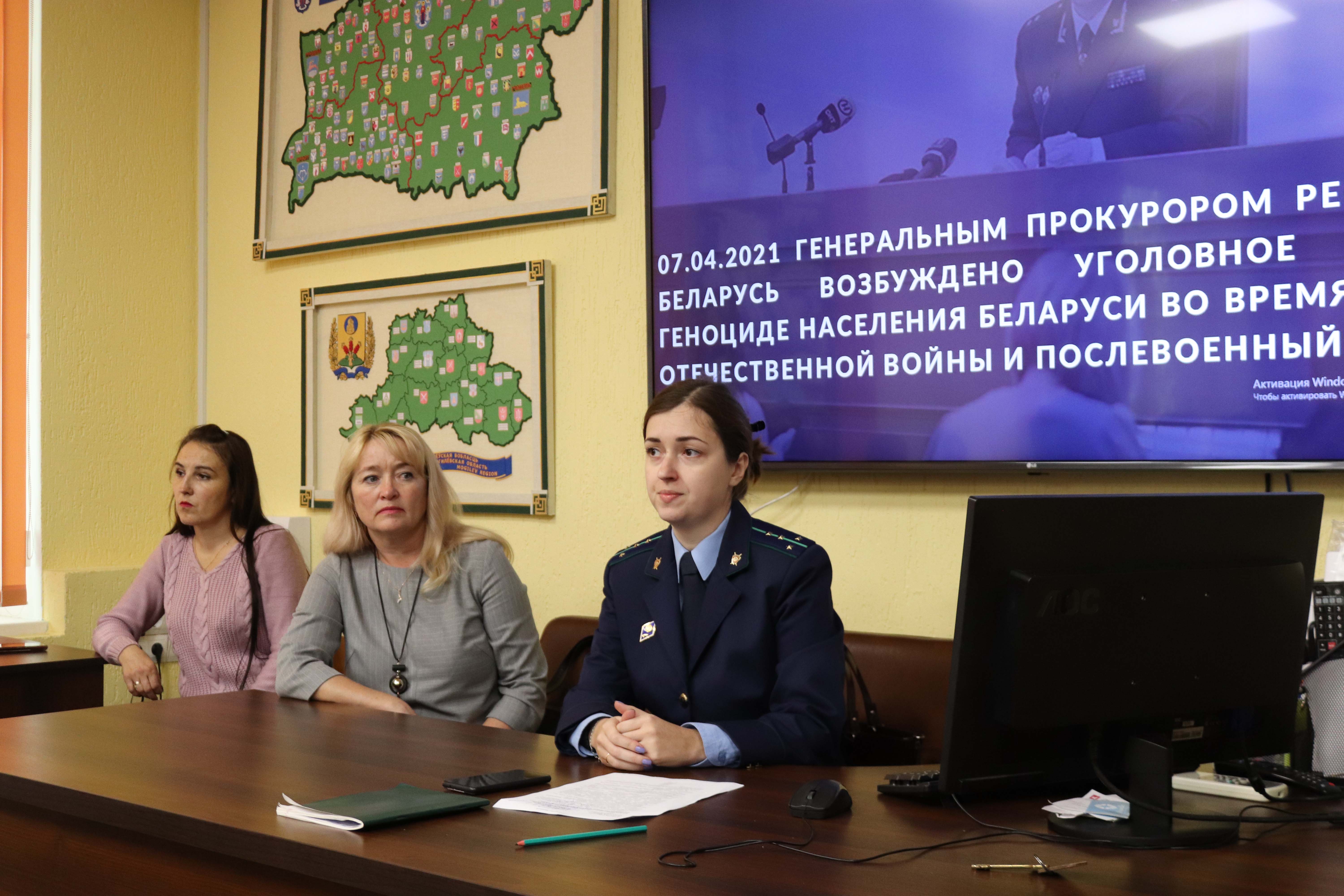 В рамках акции состоялась встреча учащихся колледжа с заместителем председателя комиссии по делам несовершеннолетних Могилевского горисполкома Короткевич Инной Федоровной и помощником прокурора города Могилева Прошко Татьяной Ивановной. Подростковой аудитории были освещены вопросы геноцида белорусского народа в годы Великой Отечественной войны, роли Республики Беларусь в сохранении мира, основных последствиях нарушения правовых норм административного и уголовного законодательства.