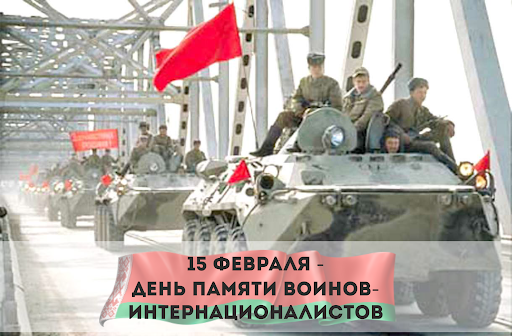 15 февраля в Республике Беларусь отмечается памятная дата — День памяти воинов-интернационалистов. В этот день в 1989 году завершился вывод советских войск из Афганистана. Война в Афганистане длилась 9 лет 1 месяц и 18 дней, в ней приняли участие около 3,5 тыс. уроженцев Могилевщины, почти полторы тысячи офицеров и солдат за стойкость и мужество, проявленные при исполнении интернационального долга, награждены боевыми орденами и медалями.
