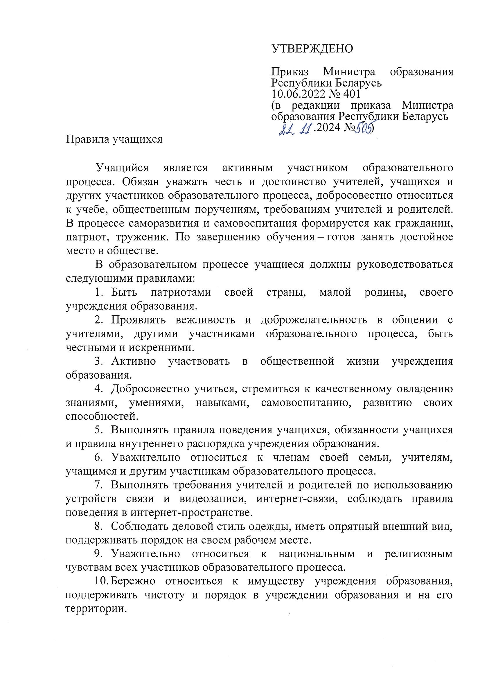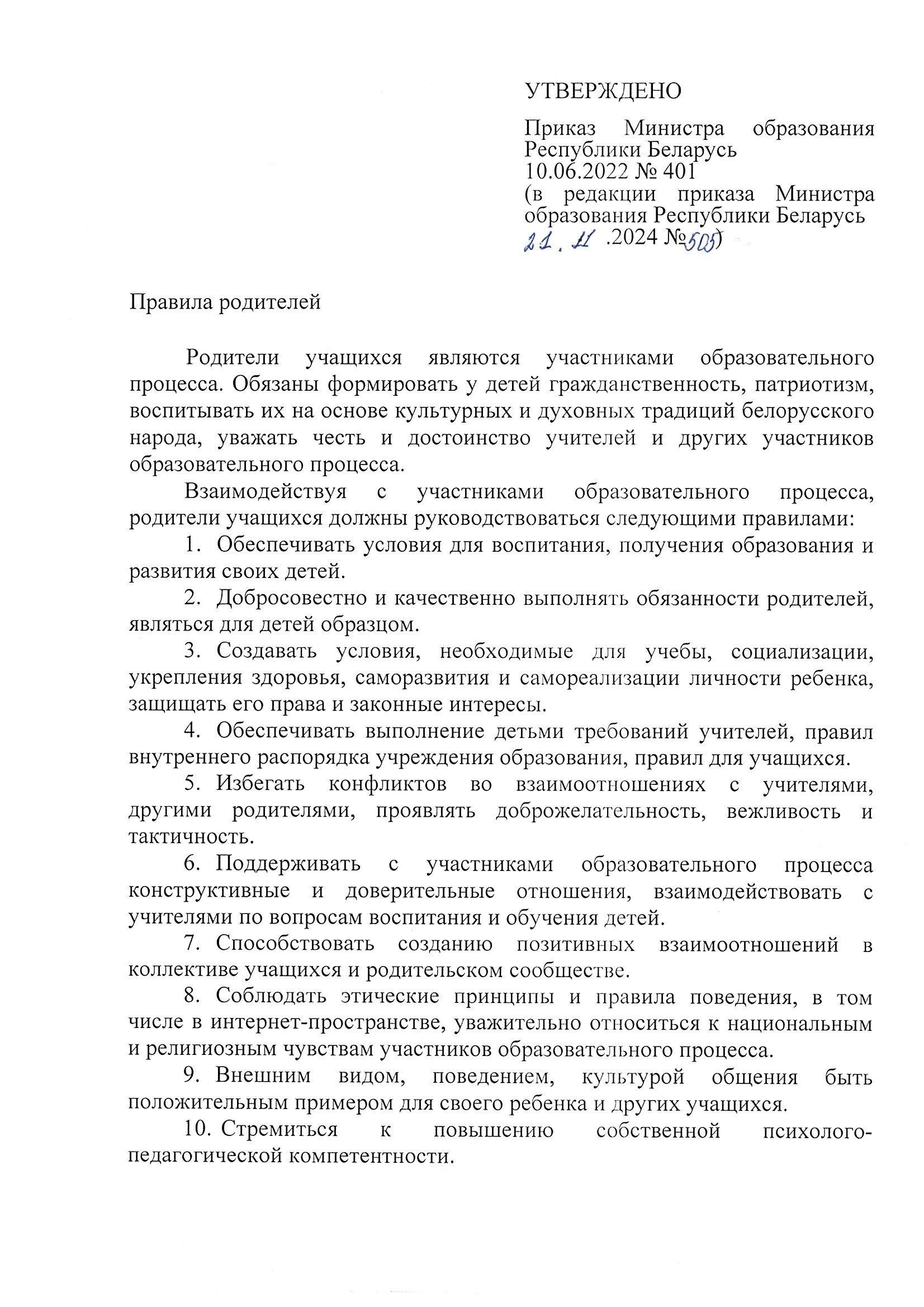 Правила для родителей и учащихся