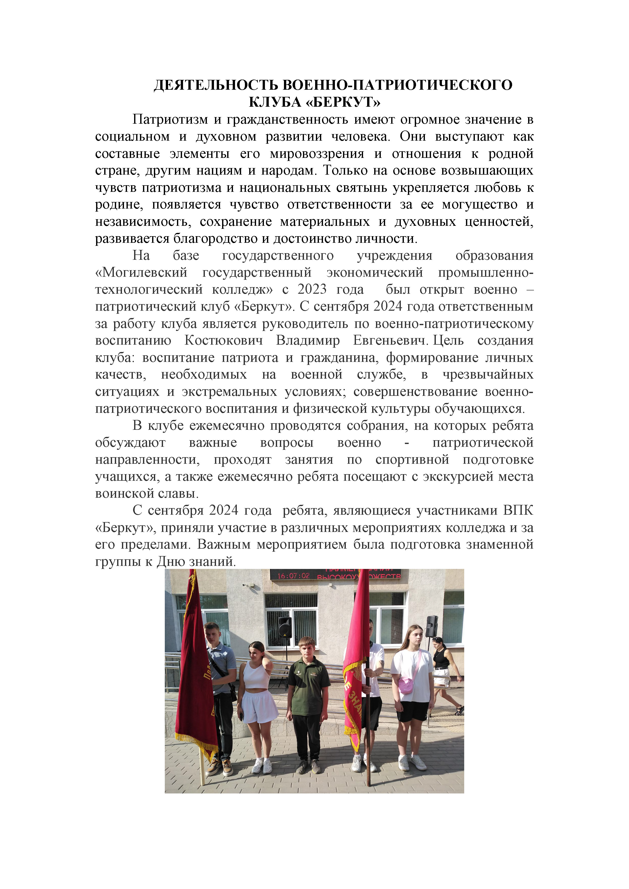 Гражданско-патриотическое воспитание учащихся – это основное направление кружков «Юный патриот», «Жыву ў Беларусi i тым ганаруся», «Краеведение» и т.д.
