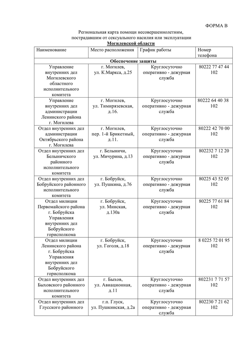 Региональная карта оказания помощи несовершеннолетним, потерпевшим от сексуального насилия, торговли людьми и связанных с ней преступлений